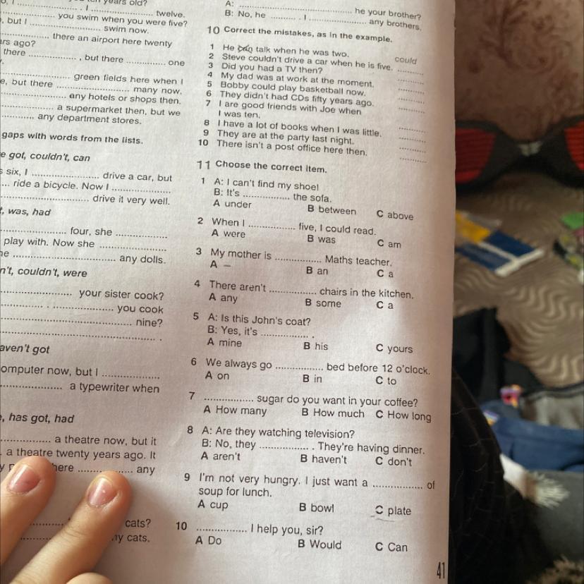 1. under 2was 3a 4any 5.his 6. to 7How much 8.aren't 9.bowl 10Can