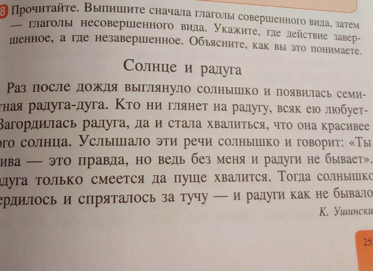 прочитайте, выпишите сначала глаголы совершенного вида затем глаголы несовершенного вида, укажите где действия завершённые а где незавершённые объясните как вы это понимаете