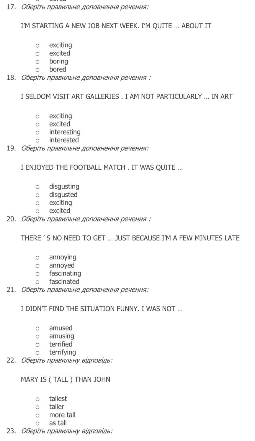 Оставшиеся варианты: exciting — волнующий, excited — взволнован, interesting — интересный.