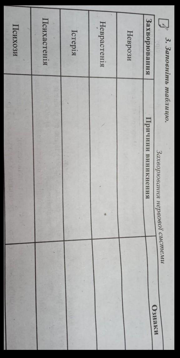 Неврози| Причини: психічні травми, стреси. Ознаки: астенічні, нав'язливі, істеричні розлади, що супроводжуються тимчасовим пониженням розумової та фізичної працездатності.
