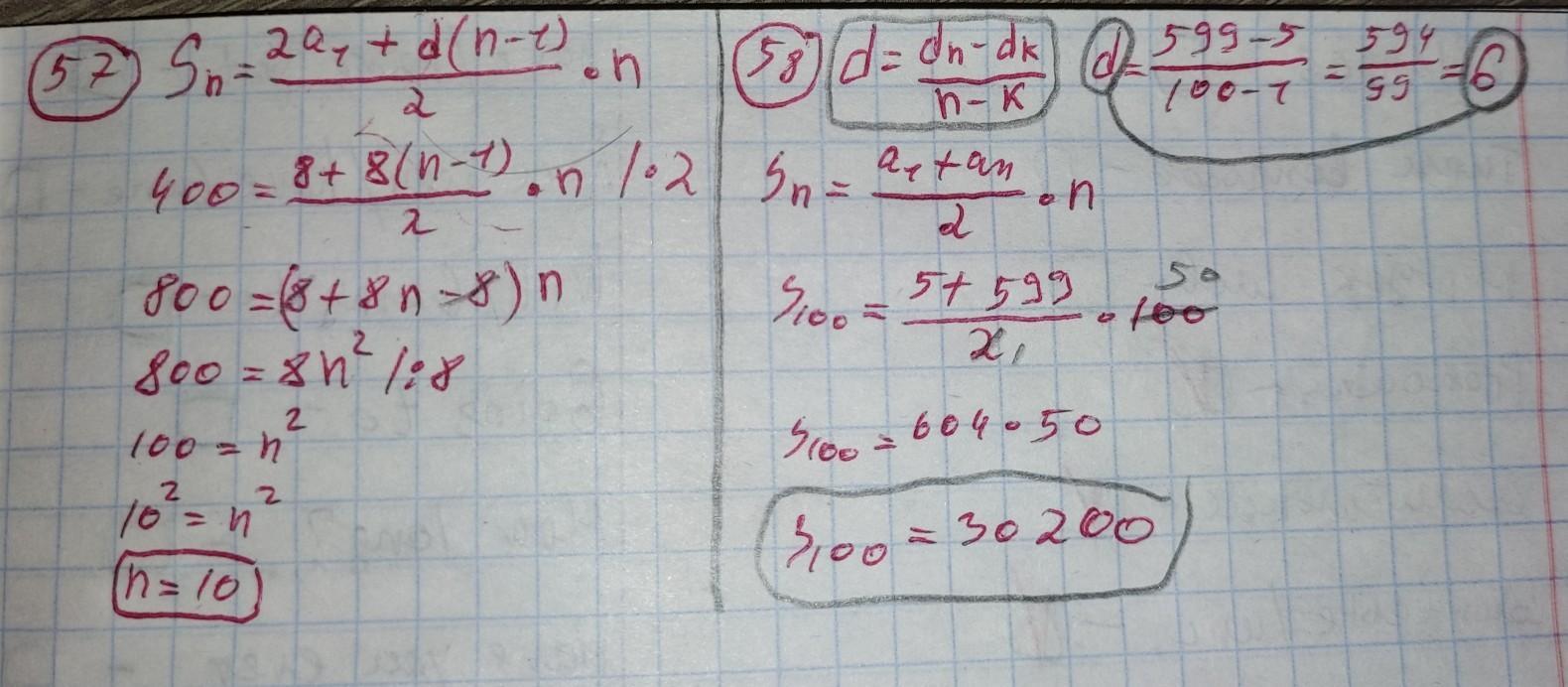 58) применяешь формулу разности арифметической прогрессии и сумму арифметической прогрессии.