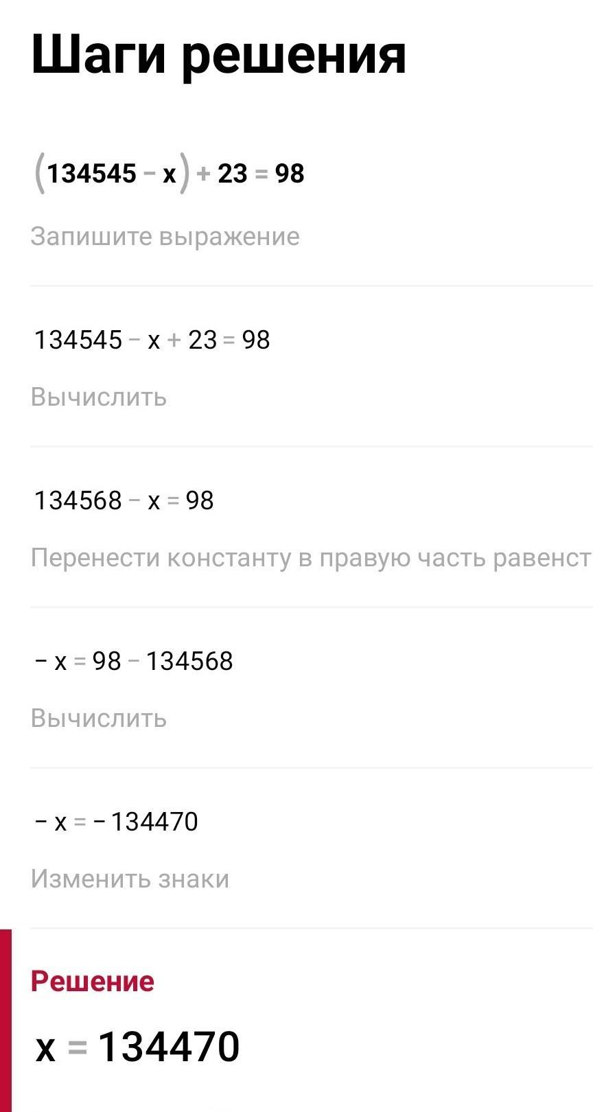 1) (134 545-x)+23=98