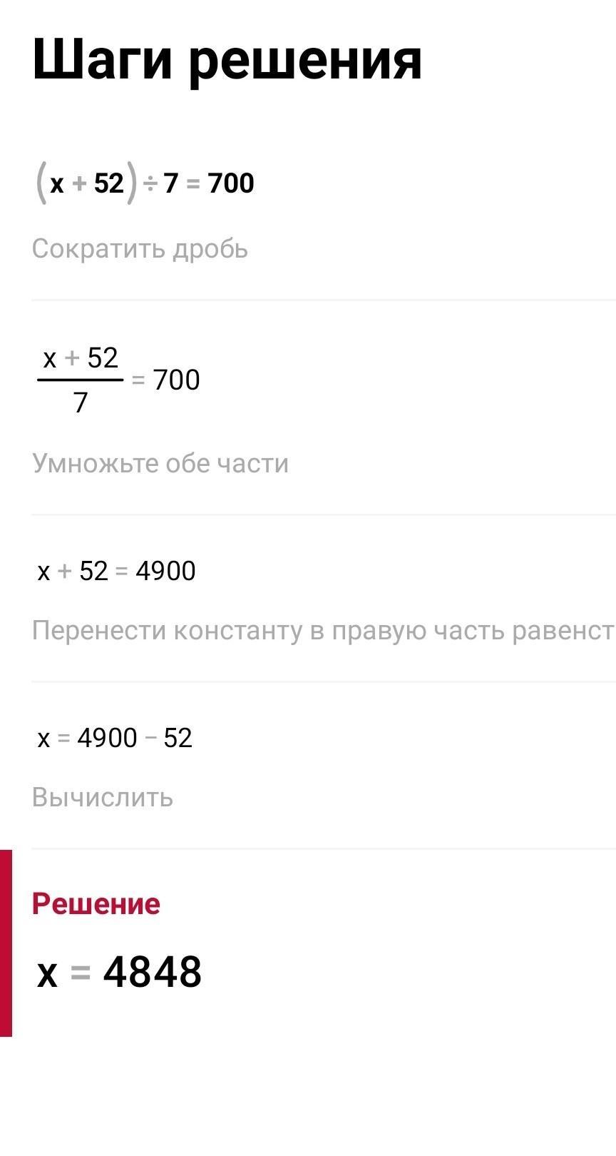 (x+52)÷7=700