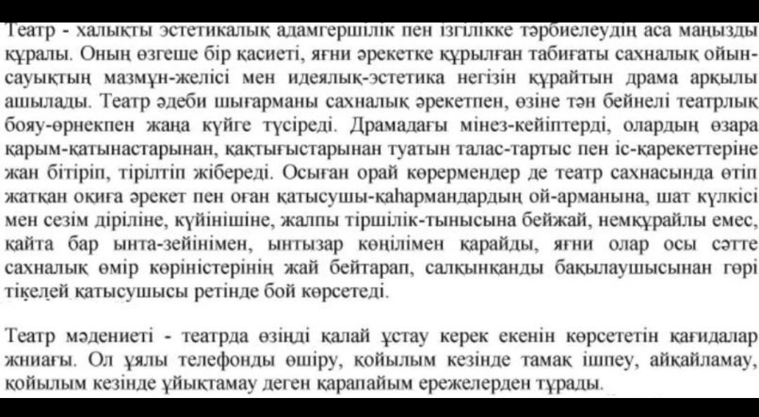 8-тапсырма.Жай сөйлем түрлерін қатыстырып,театр өнері мен мәдениеті туралы таныстырылым жаса.