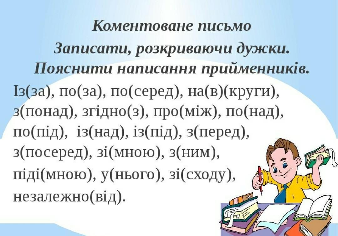 Із-за,поза,посеред,навкруги,з-понад, згідно з,поміж,понад,попід,із-над,із-під, з-перед,з-посеред,зі мною,з ним,піді мною,у нього,зі сходу, незалежно від.