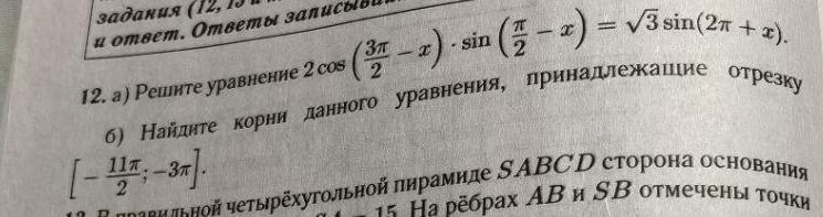 2cos(3П/2-x)sin(П/2-x)=√3sin(2П+x) [-5,5П; -3П]
