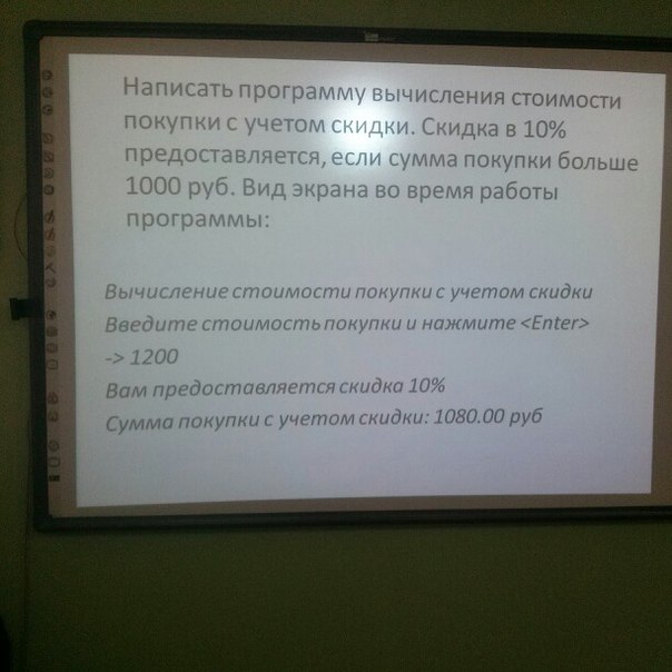 std::cout << "Сумма покупки с учётом скидки: " << a << " руб." << std::endl; system("pause");