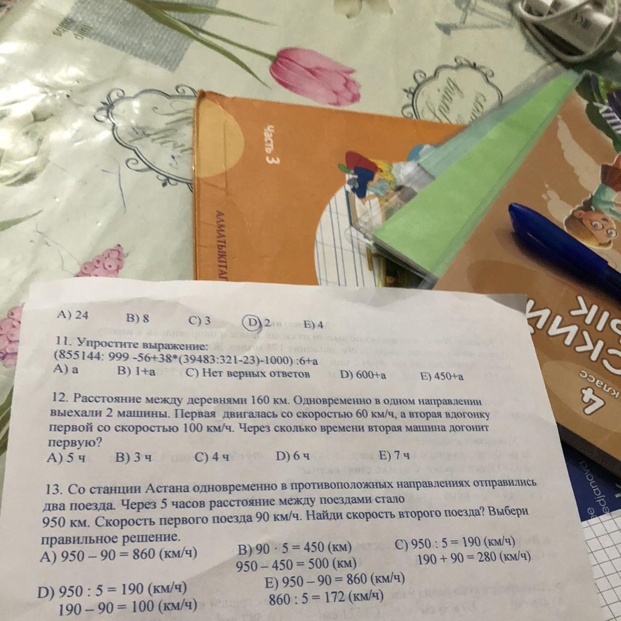 11. В потому что (855144:999-56+38*(39483:321*23)-1000=107302 а поскольку 600 и 450 не делятся остаётся вариант В а не А потому что там должно быть деление.