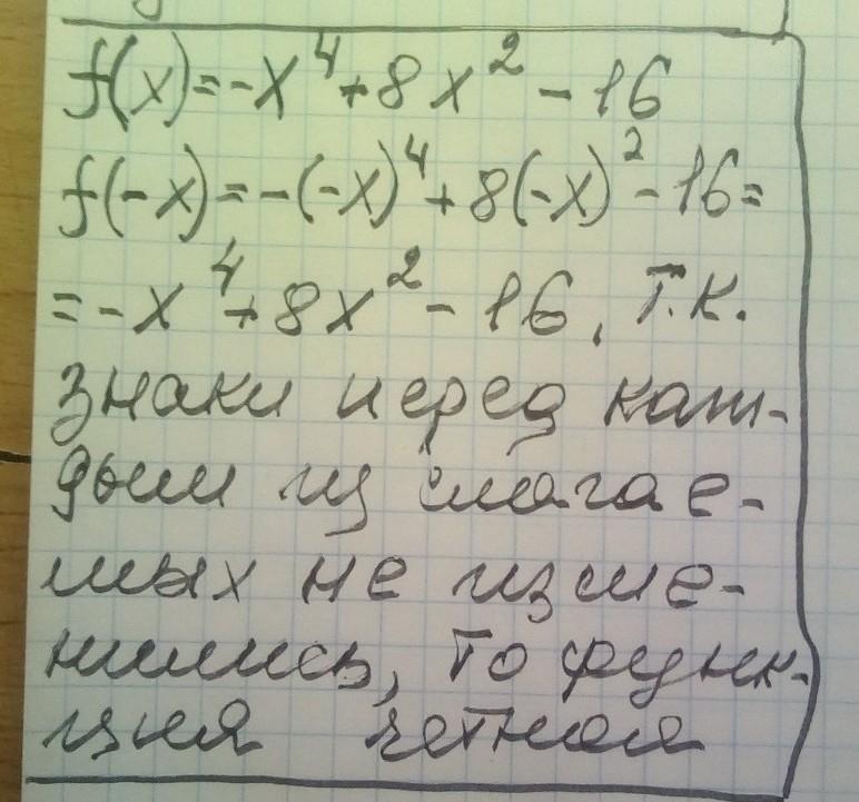 -х^4+8х^2-16 определите четность или нечетность функции.​​