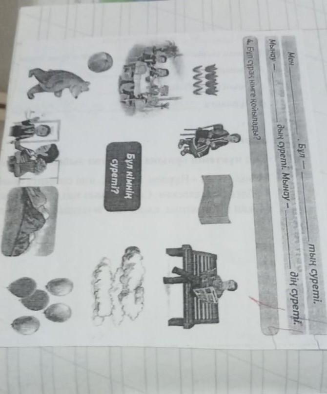 бұл бұлттың суреті. Мынау балалардың (оқушылардың, аюдың, шарлардың, таулардың, жаудың ) сүреті . Мынау гүлдердің суреті.