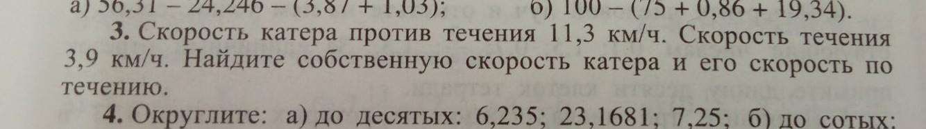 V катера = 11.3 + 3.9 = 15.2 км/ч