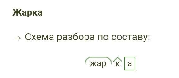 Состав слова: жарк — корень, ий — окончание, жарк — основа слова.