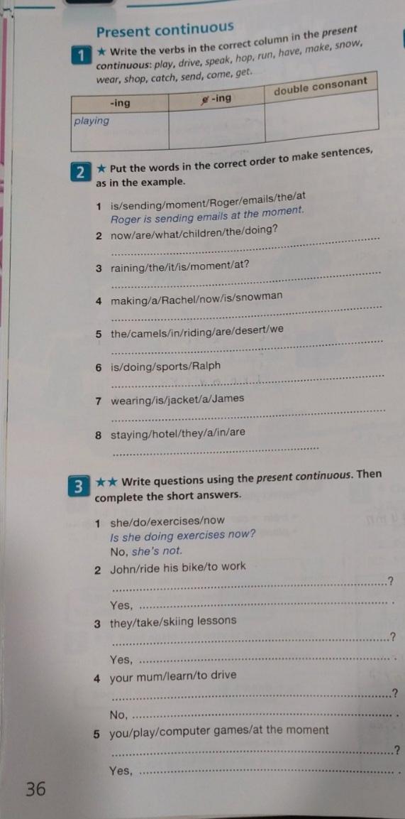 pierwsza kolumna playing, speaking, hoping, snowing, wearing, catching, sending