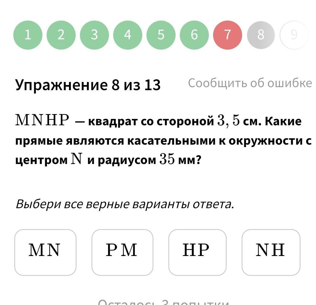 3,5 см = 35 мм. Если провести окружность с центром в точке (N) , то NМ и NН - будут радиусами этой окружности, а вот НР и МР - касательные
