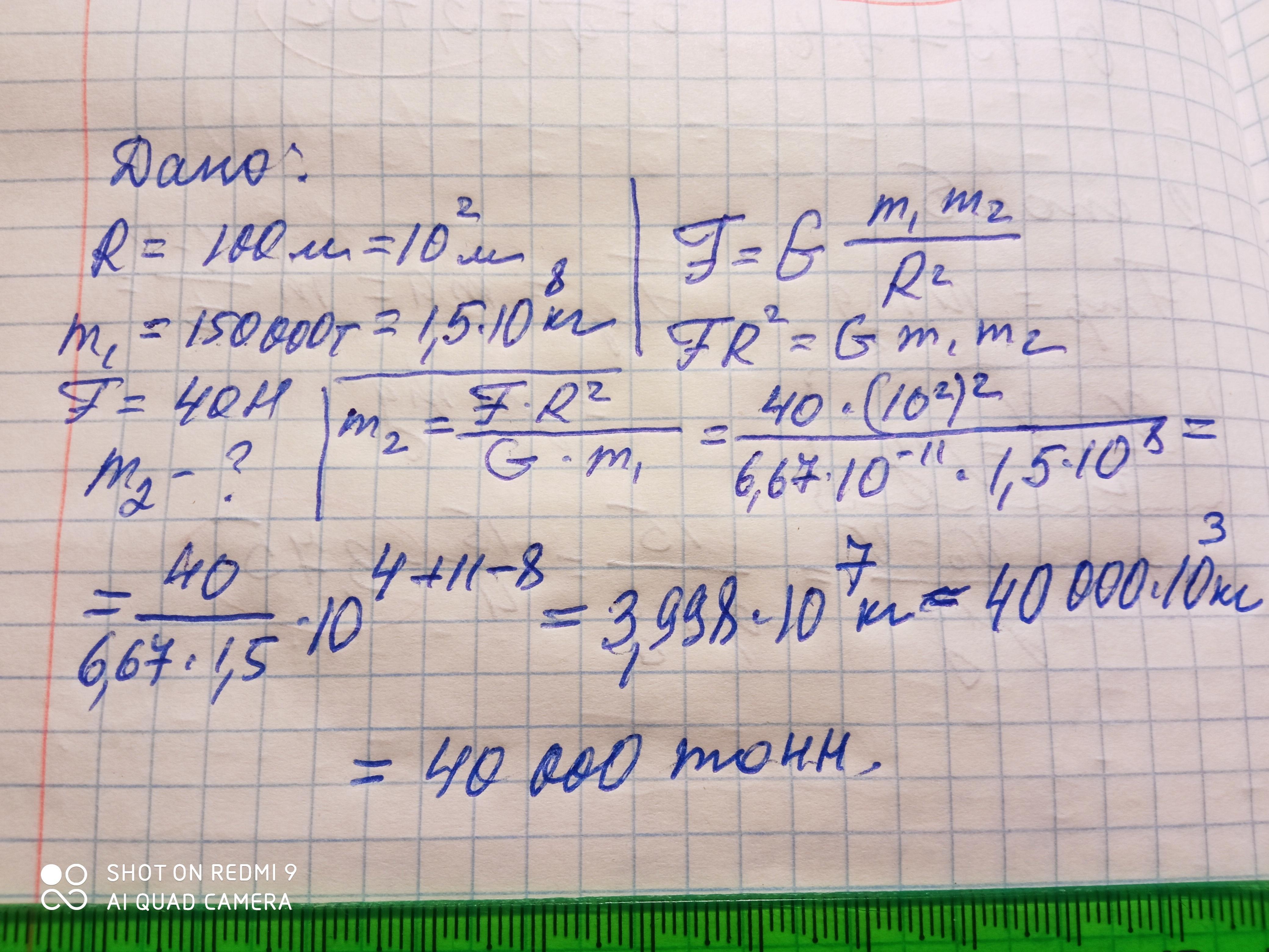 1.У порту на відстані 100 м один від одного стоять два танкери, маса одного з них становить 150 000 т. Визначте масу іншого, якщо сила гравітаційного між ними становить 40 Н.