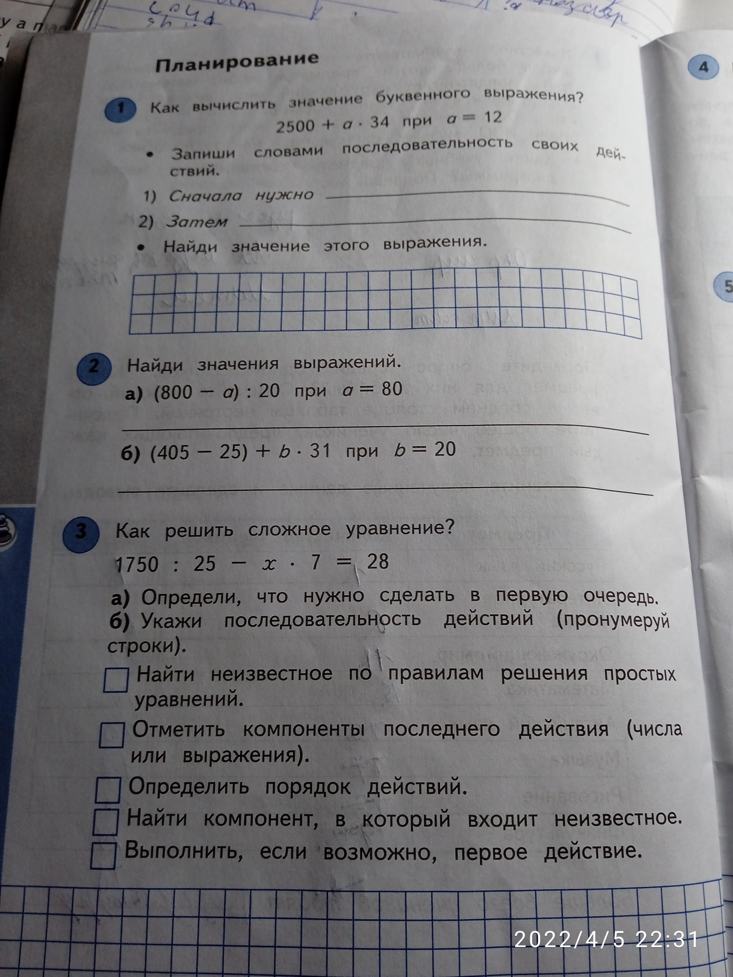 1) Сначала нужно подставить число вместо буквы, затем составить выражение и решить его