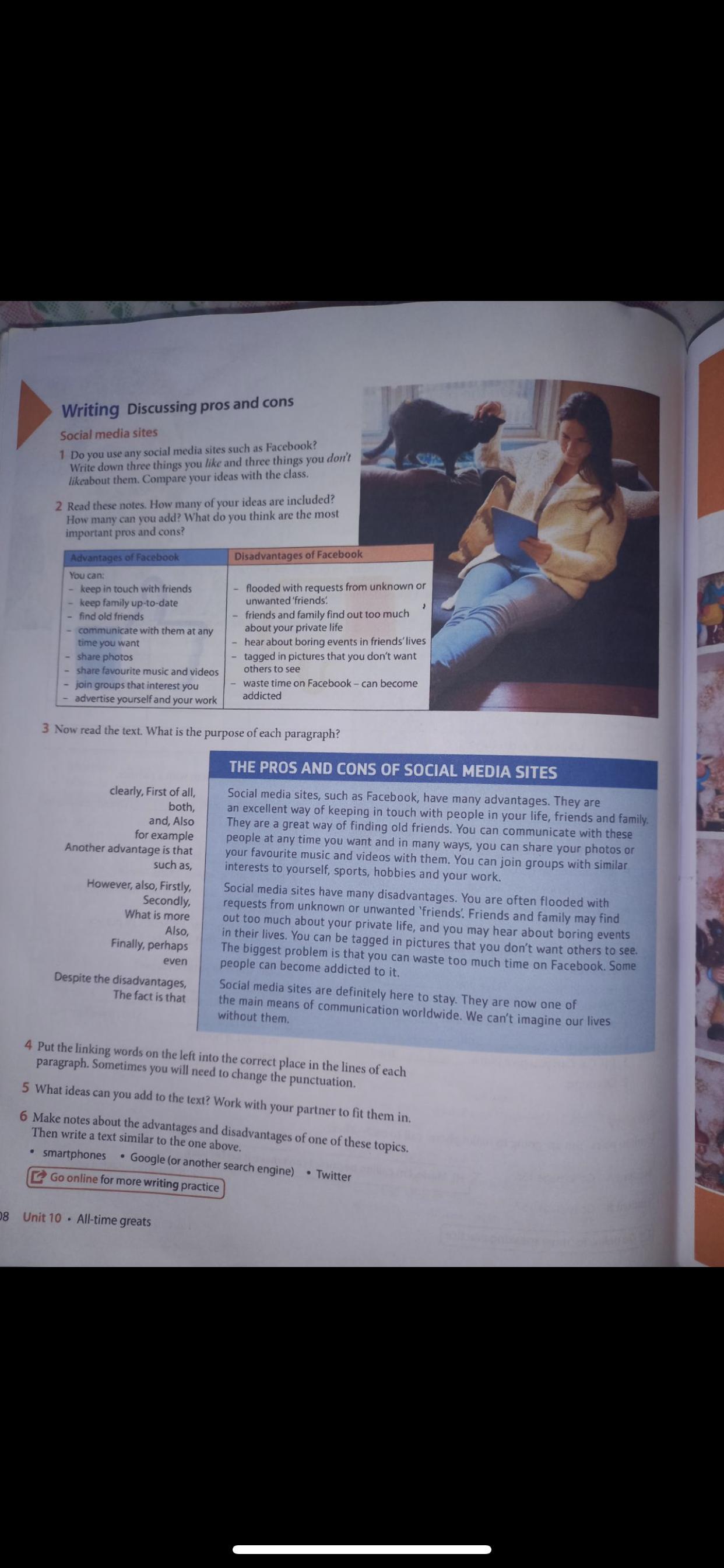 However, social media sites have many disadvantages. Firstly, you are often flooded with requests from unknown or unwanted 'friends. Secondly, friends and family may find out too much about your private life. What is more, you may hear about boring events in their lives. Also, you can be tagged in pictures that you don't want others to see. Finally, the biggest problem is perhaps that you can waste too much time on Facebook. Some people can even become addicted to it.
