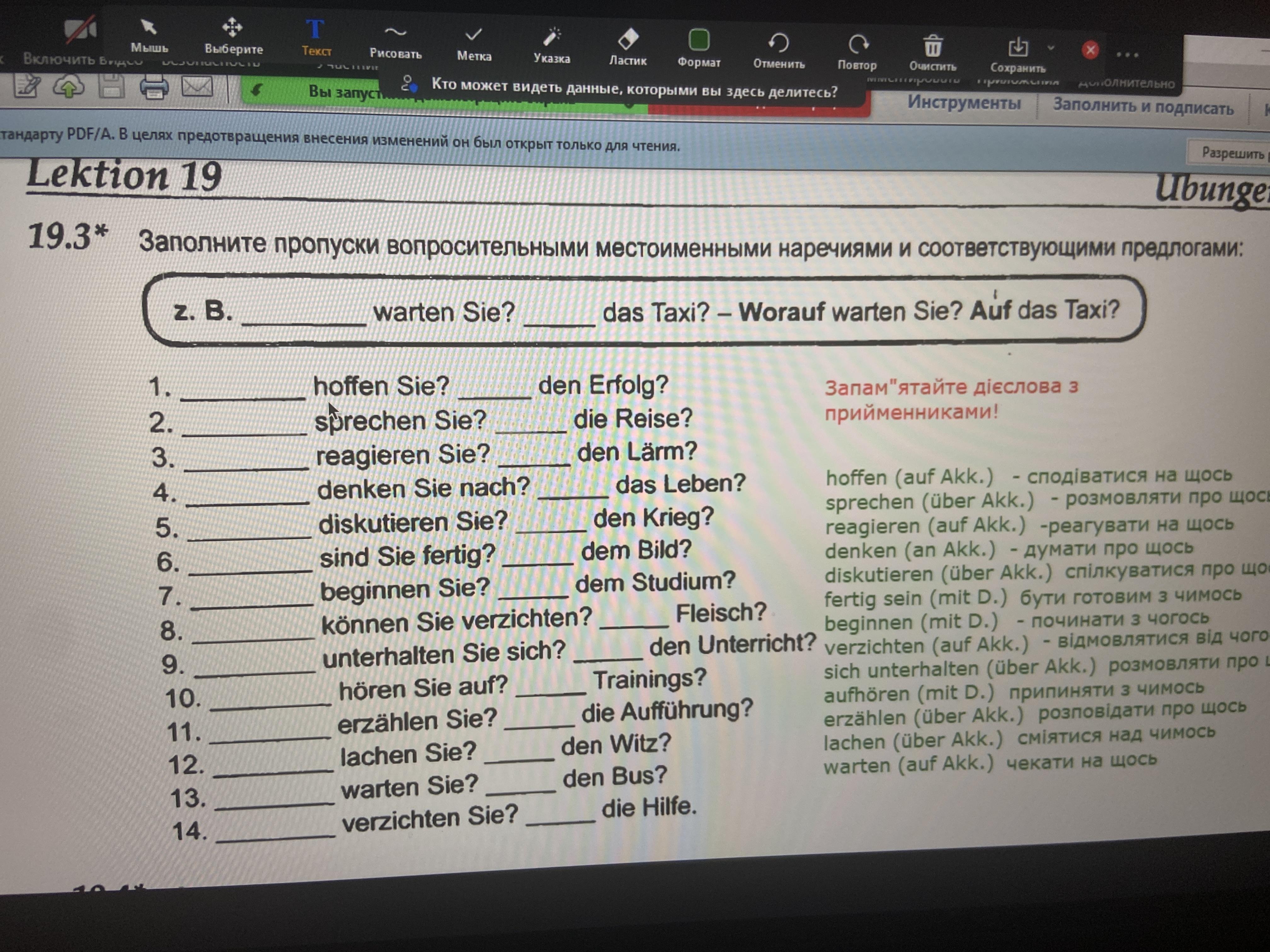 Зеленым шрифтом тебе даны управления глаголов, т.е. уже дана подсказка, с какими предлогами они употребляются.