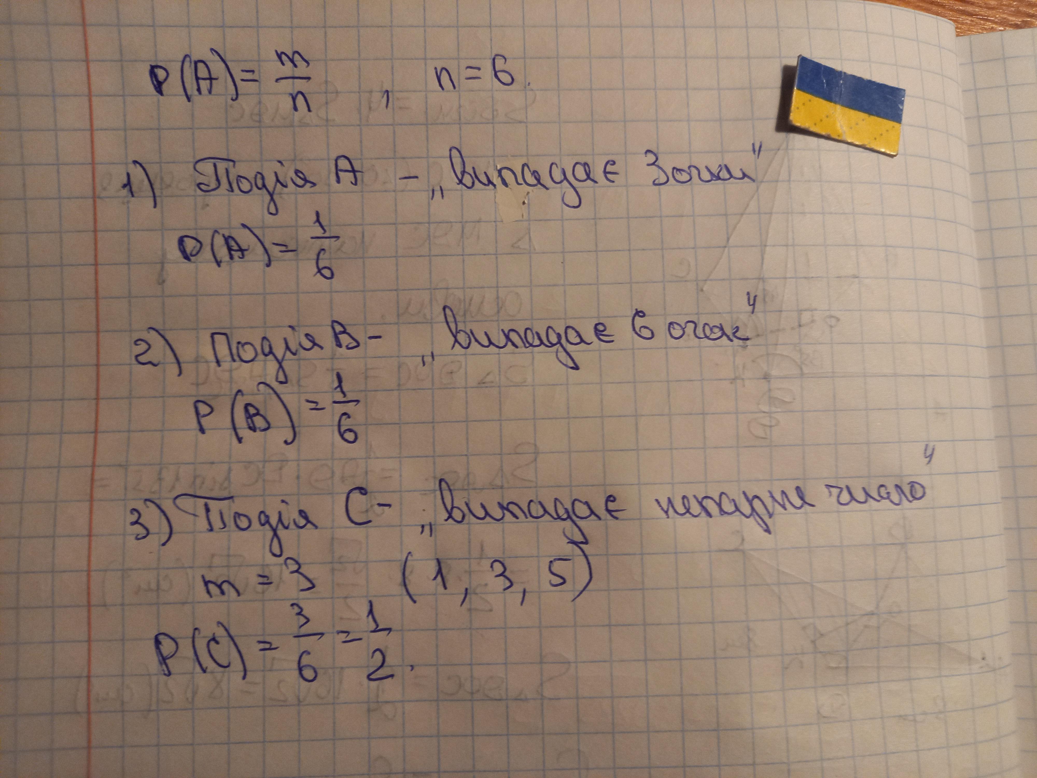 1)«випадає 3 очки»; 2) «випадає 6 очок»; 3)«випадає непарне число».
