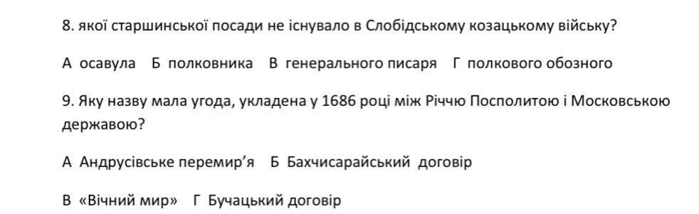 1.Осавул,Генеральний писар та полково обозний -існували в Слобідському козацькому війську.