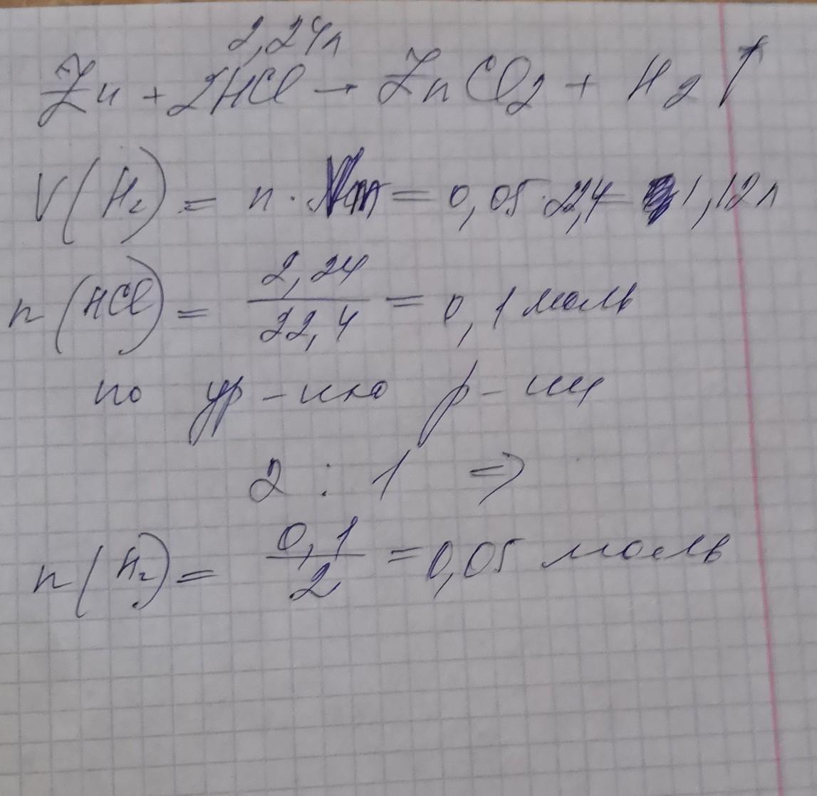 Определите объем газа, образовавшегося при взаимодействии 2,24 л соляной кислоты с цинком