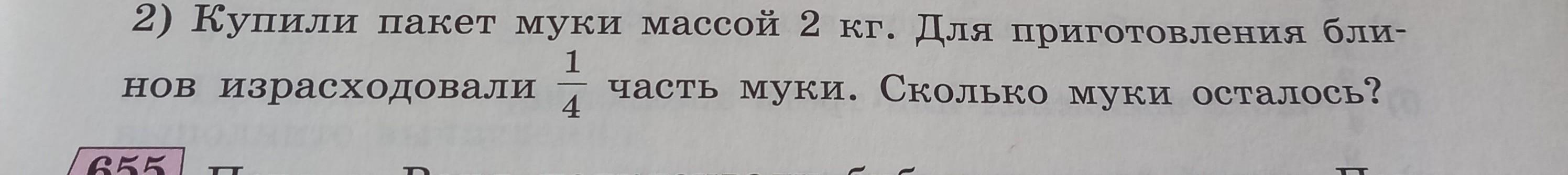 2. 2 * 3/4 = 3/2 = 1,5 кг муки осталось