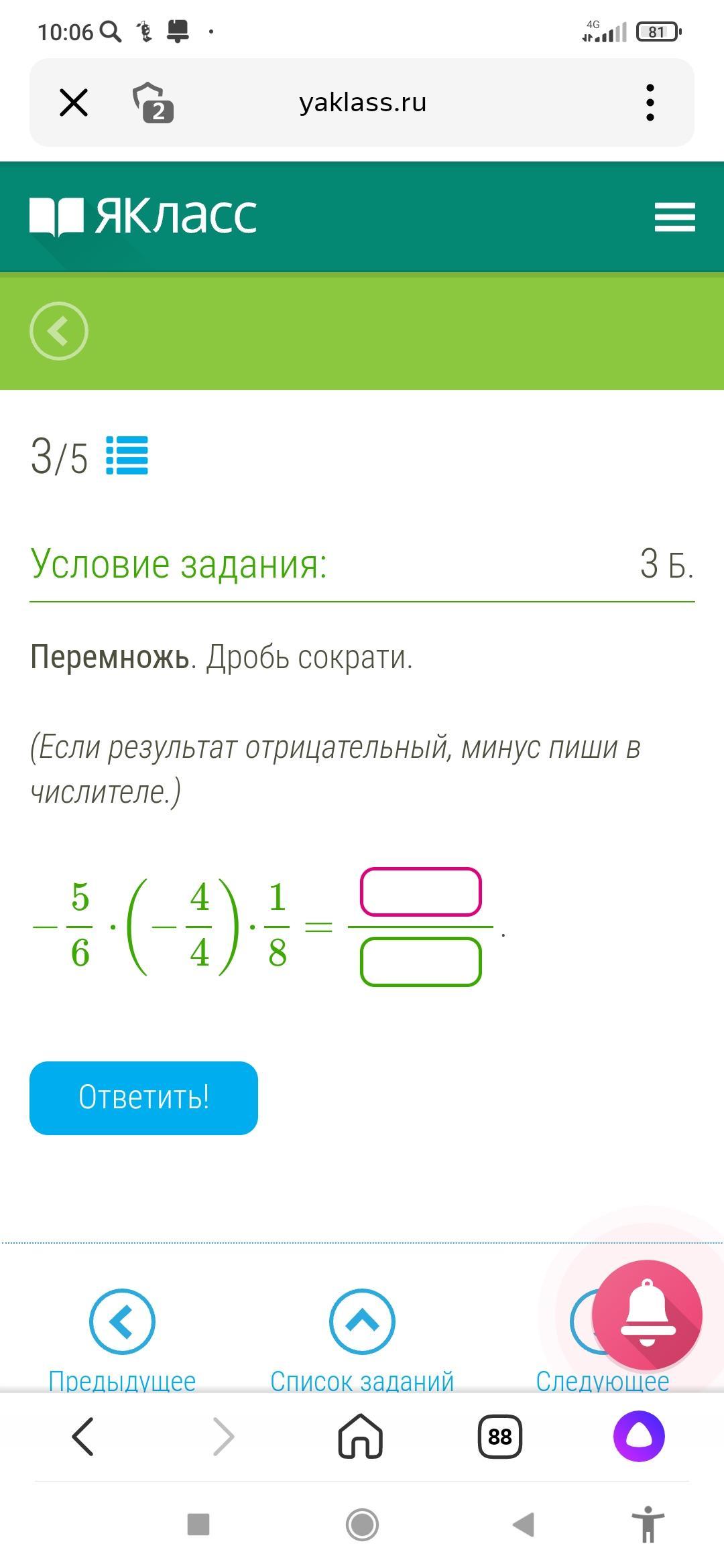 Получается положительная дробь, так как минус на минус при умножении всегда дает плюс.