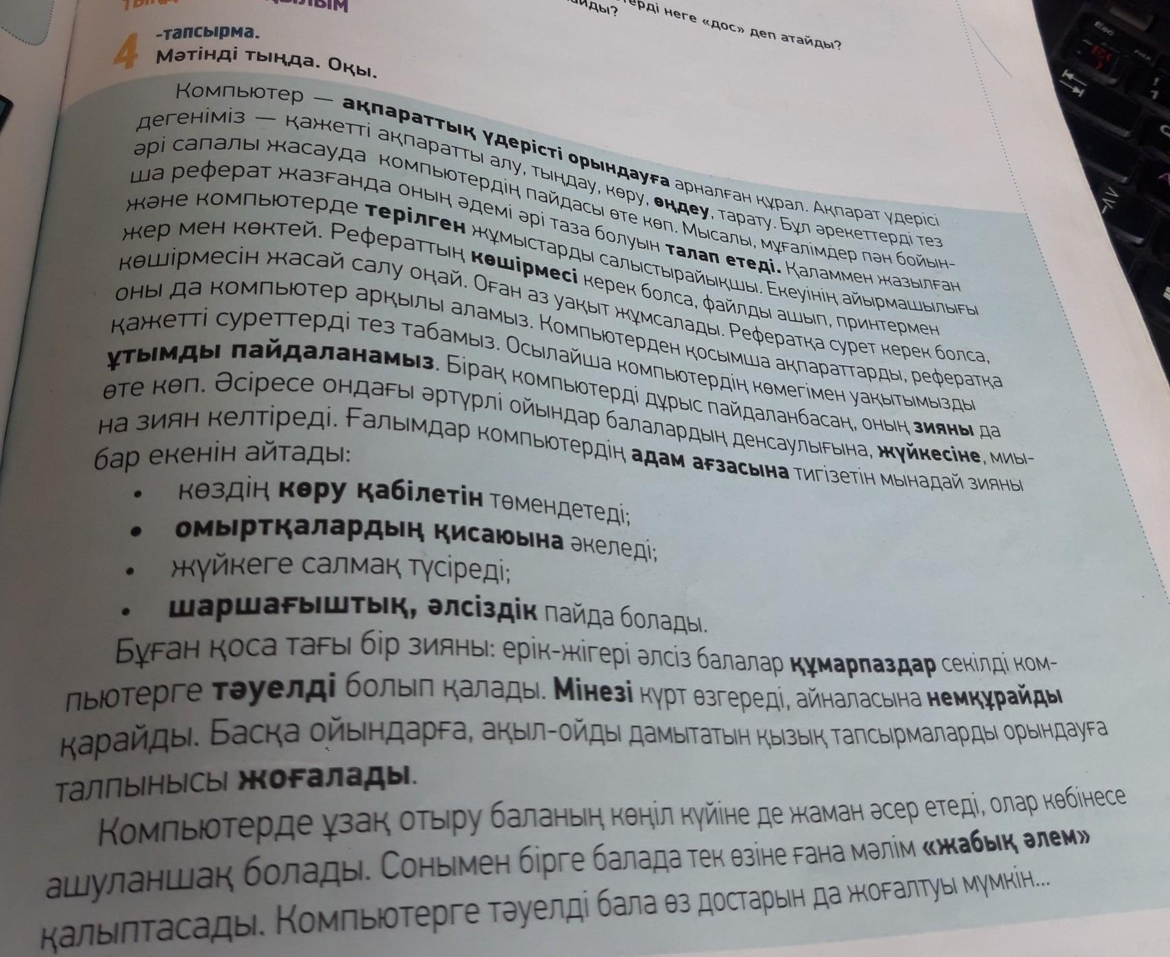 1)Компьютердің адам ағзасына қандай зияны бар? 2)Адам жүйкесіне қозбау үшін не істеу керек? 3)Компьютер мұғалімдерге не пайдасын әкеледі? 4) Егер адам компьютер де көп отырса қай жері қыйсаяды? 5)Балалар неге құмарпазданып кетеді? 6)Компьютер не үшін құралған? 7)Компьютердің қандай пайдасы бар? Пж помогите дам 35 баллов