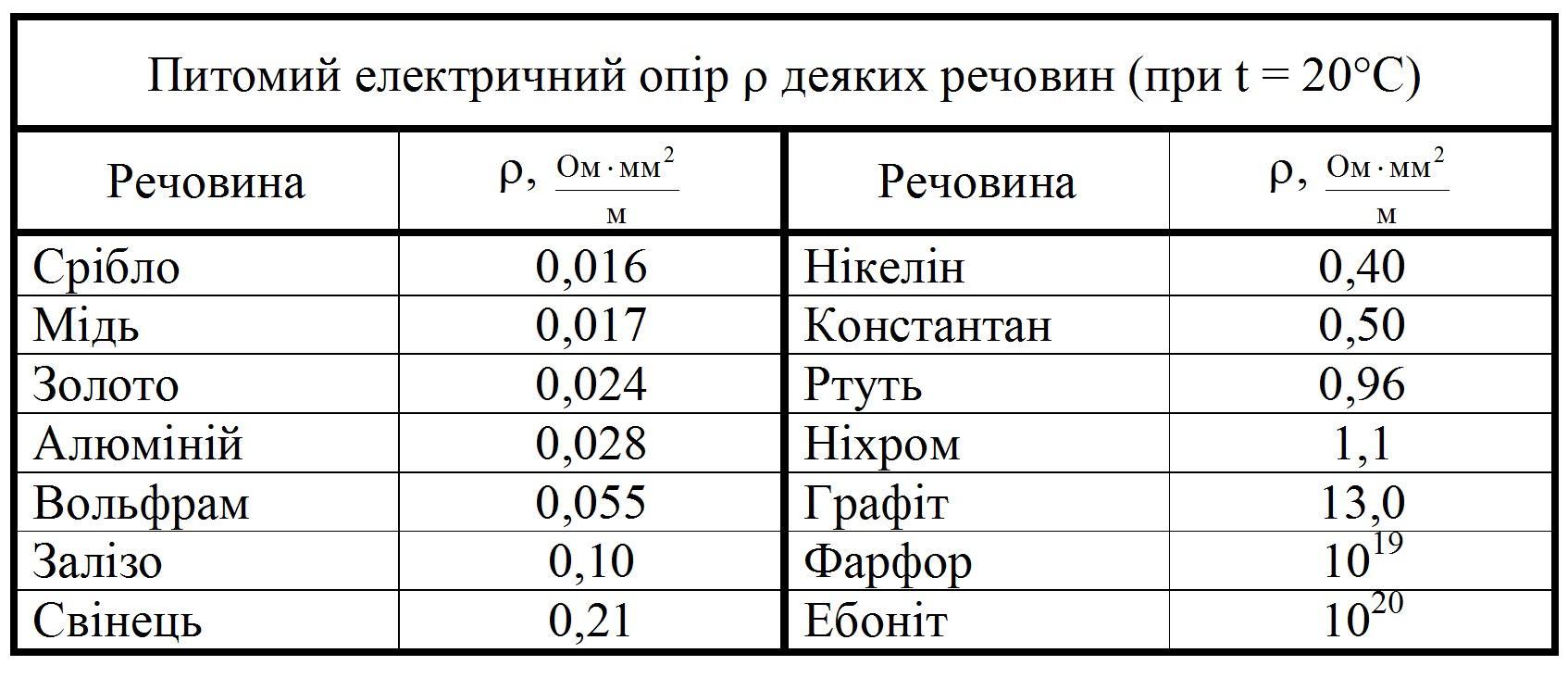 На фото є формули і питомий опір міді.