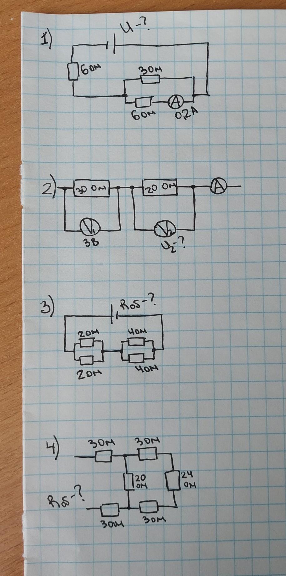 Найдем общую силу тока на 2х параллельных резисторах:
