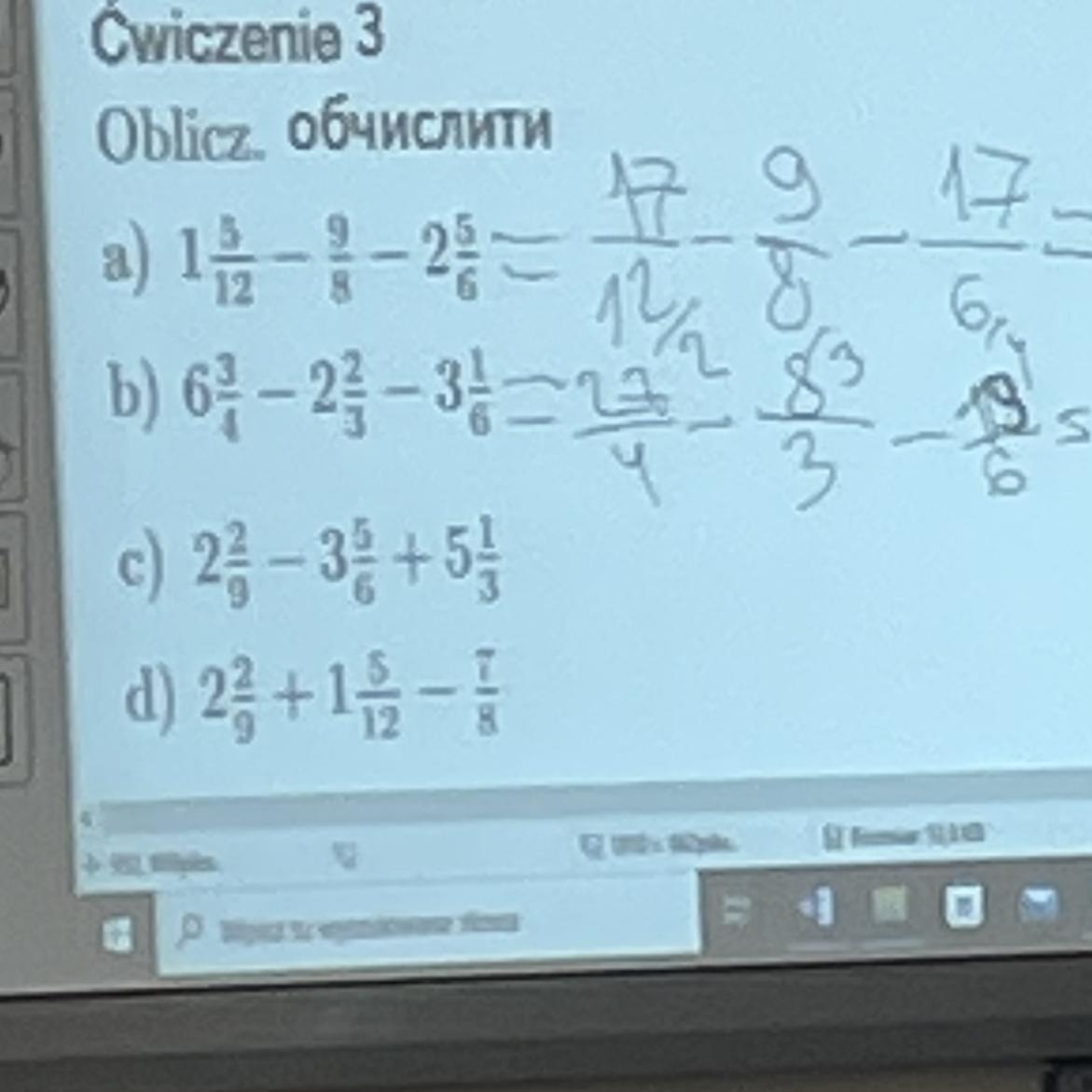 2 2/9 + 1 5/12 - 7/8 = 2 16/72 + 1 30/72 - 63/72 = 3 46/72 -63/72 = 2 55/72