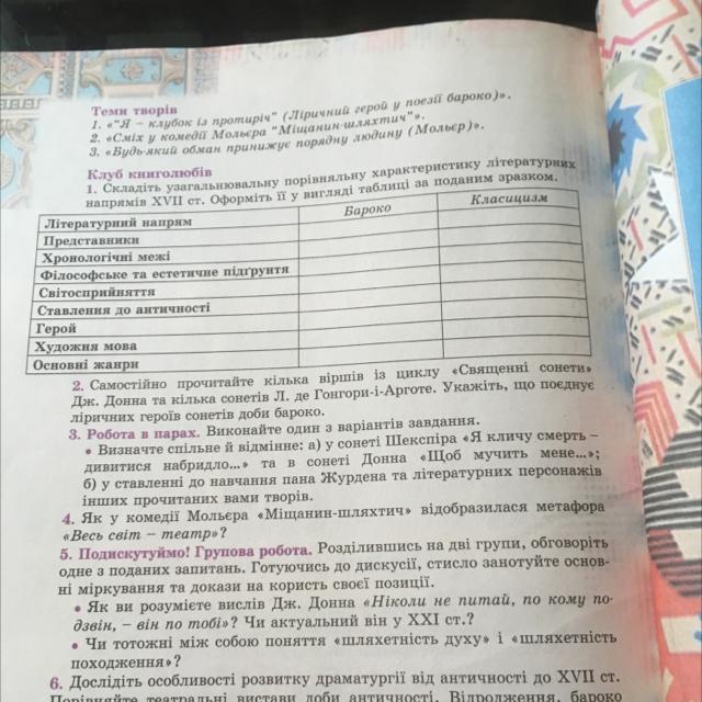 складіть узагальнювальну порівняльну характеристику літературних напрямів XVIIст. оформіть її у вигляді таблиці за поданним зразком