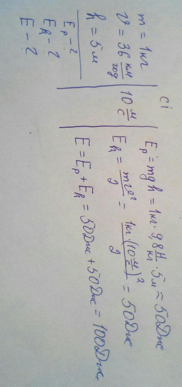 Тіло масою 1 кг летить зі швидкістю 36 км/год на висот 5м Визначити потенціальну, кiнетичну та повну механiчнi енергії