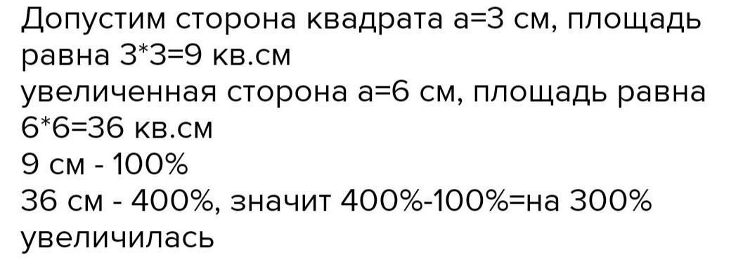 7. Сторона квадрата увеличилась в 2 раза. На сколько процентов увеличилась площадь прямоугольника?