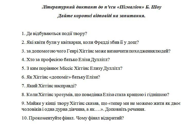10. Тому що Хіггенс не був зацікавлений у Елізі, так як він на ній виграв парі, і це всього на всього був спір між двома чоловіками