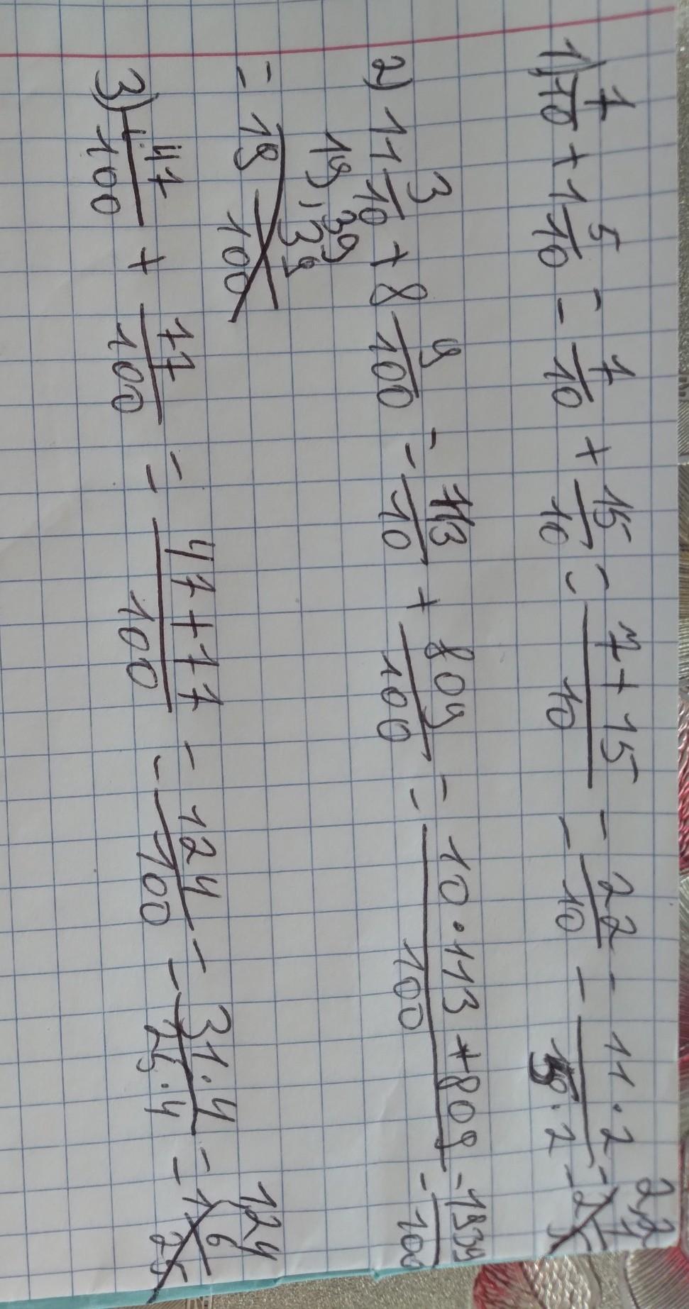 помогите пожалуйста запишите ввиде десятичных дробей и решите примеры . 7/10+1 5/10,11 3/10 + 8 9/100, 4 7/100 +77/100