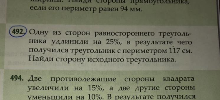 В равностороннем треугольнике все стороны были одинаковыми, их примем за x. После увеличения одной стороны на 25% её размер можно выразить как 1,25*x. Составим и решим уравнение: