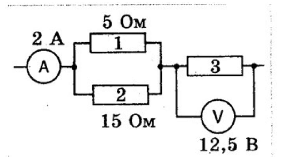 R=R1*R2/(R1+R2)+R3=5*15/(5+15)+6,25=10 Ом