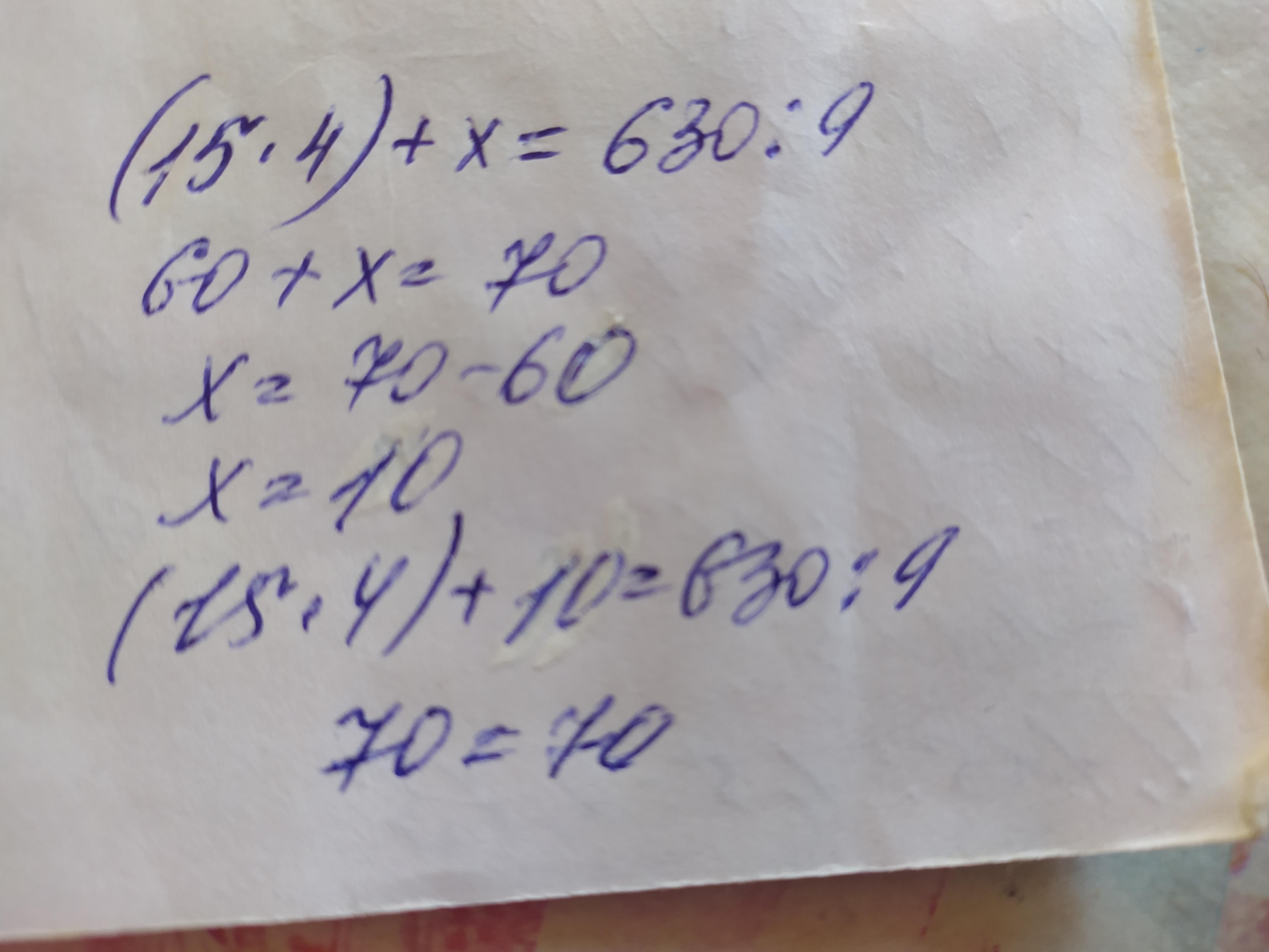 Произведения чисел 15 и 4 увеличь на неизвестное число. Получится частное чисел 630 и 9.