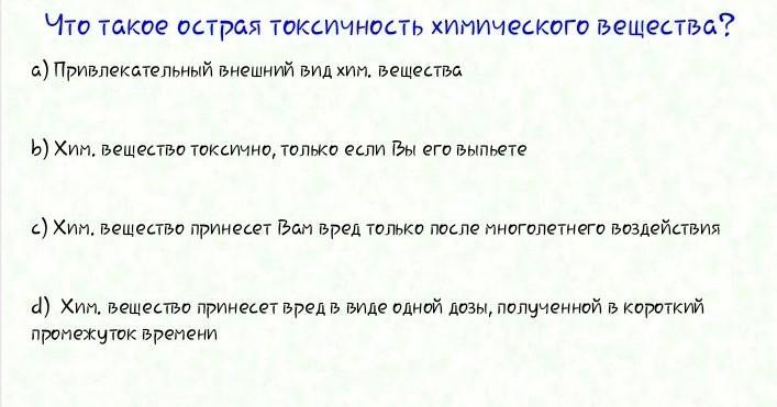d) хим. вещество принесет вред в виде одной дозы, полученной в короткий промежуток времени