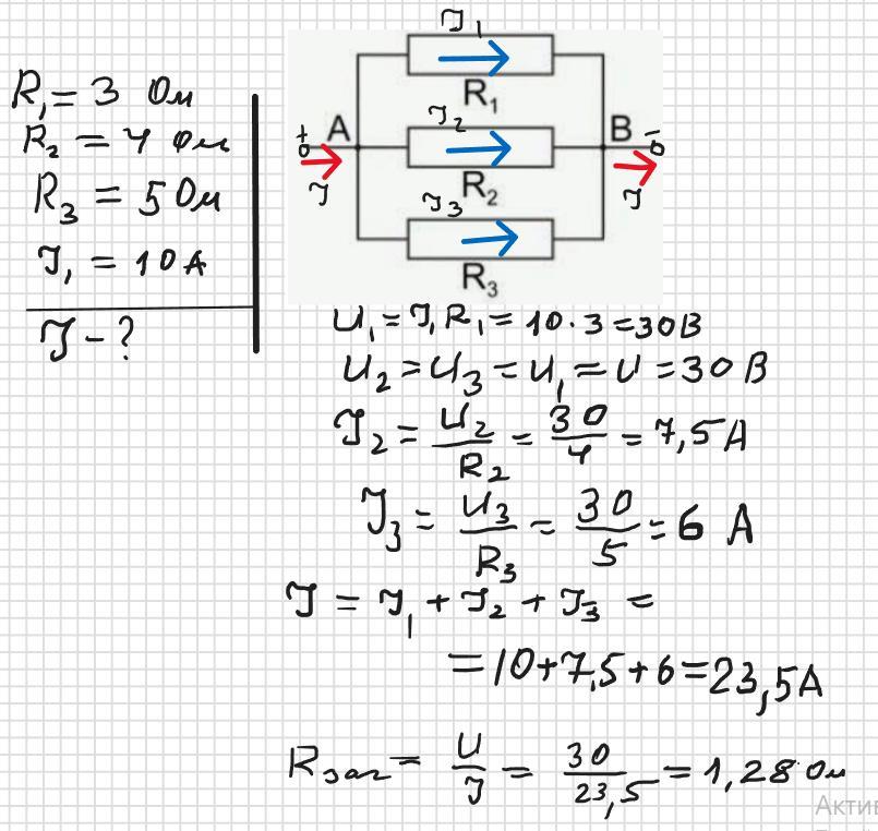 першому з них дорівнює 10 А. Знайти силу струму в нерозгалуженій частині
