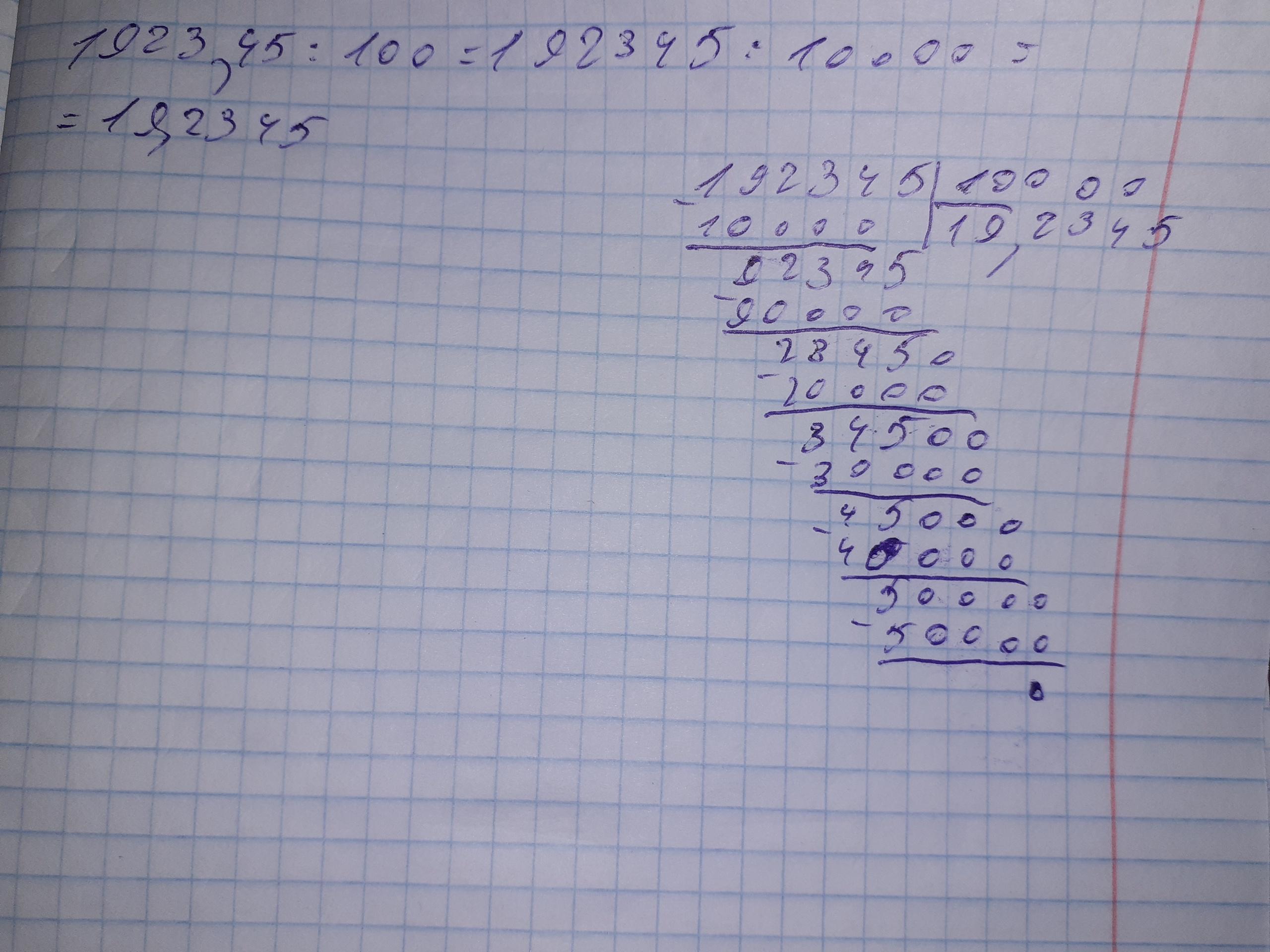 в данном случае запятая уже стоит у 1923,45 поэтому считаем от запятой на две цифры влево, и там ставим запятую