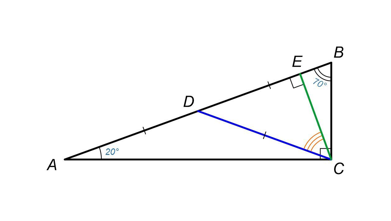 Рассмотрим ΔBEC - это прямоугольный треугольник, у которого ∠EBC = 70°; ∠BEC = 90°; ∠BCE - ?