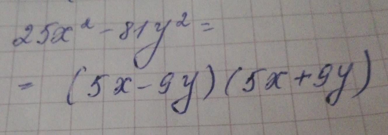 Помогите пожалуйста: Разложить многочлен на множетили используя формулу сокращенного умножения 25x²-81y2