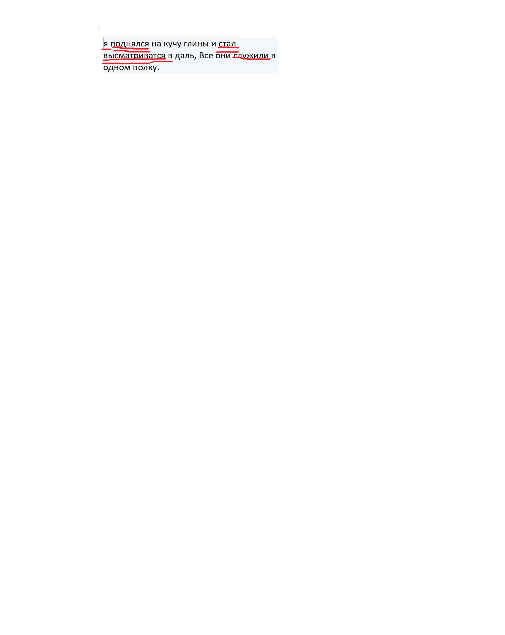Ответ: я поднялся на кучу глины и стал высматриватся в даль, Все они служили в одном полку.