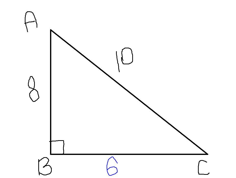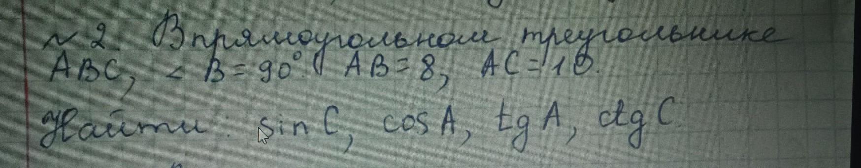 Ну чё, построим прямоугольный треугольник ABC, где угол B = 90 градусов. Смотри мой корявый рисунок ниже.