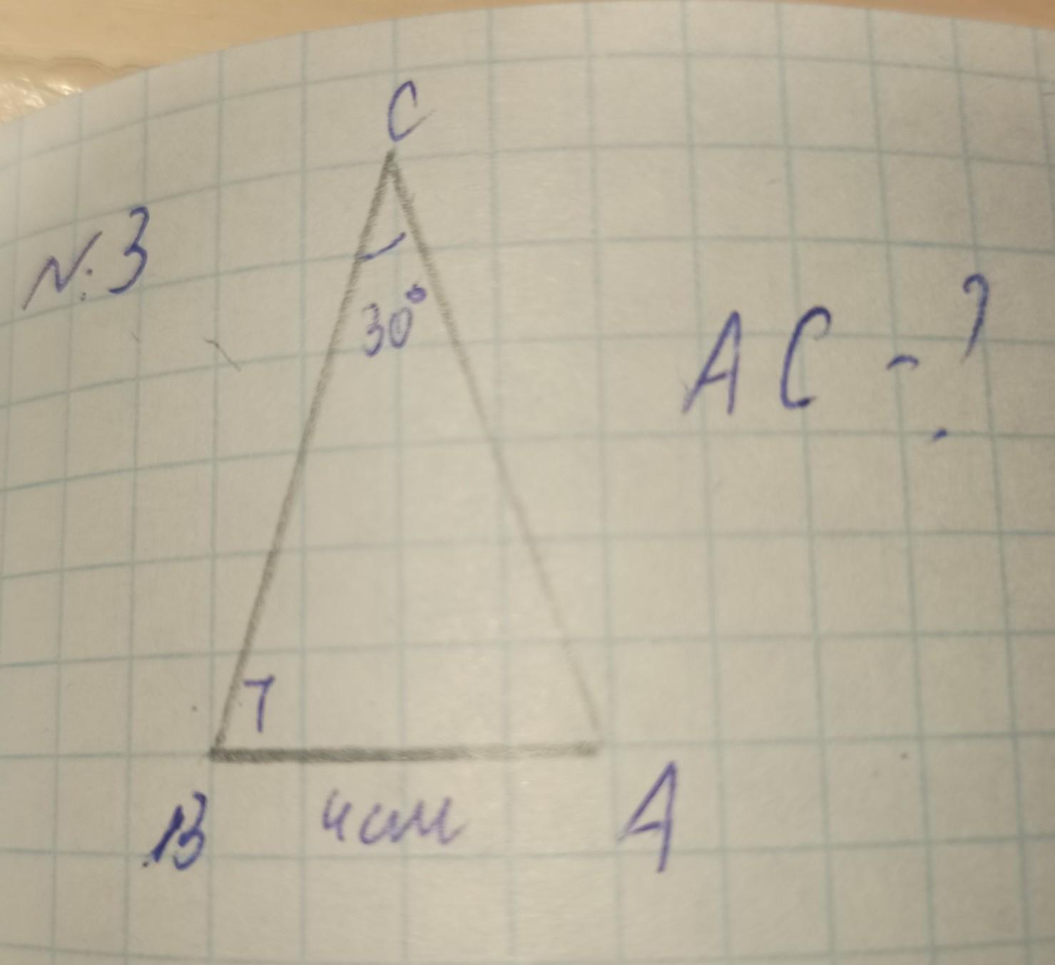 мы имеем прямоугольный треугольник, а если в этом прямоугольном треугольнике один угол равен 30, то лежащий против него катет равно половине прилежащего к этому углу катету. ВС = 4*2 =8