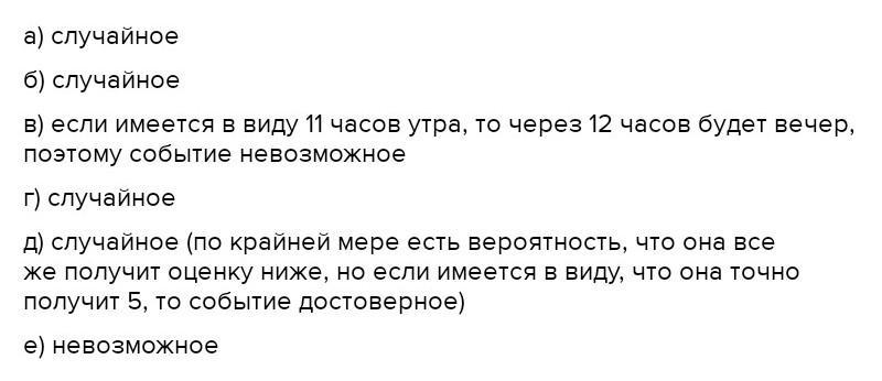 В упражнениях представлены события, происходящие в данных услови. Определите (устно) для каждого события является ли оно невозможным, достоверным или случайным (453 найдено третье слово на десятой странице случайно раскрытого учебника алгебры . это слово 1 вероятность 2 начинается с