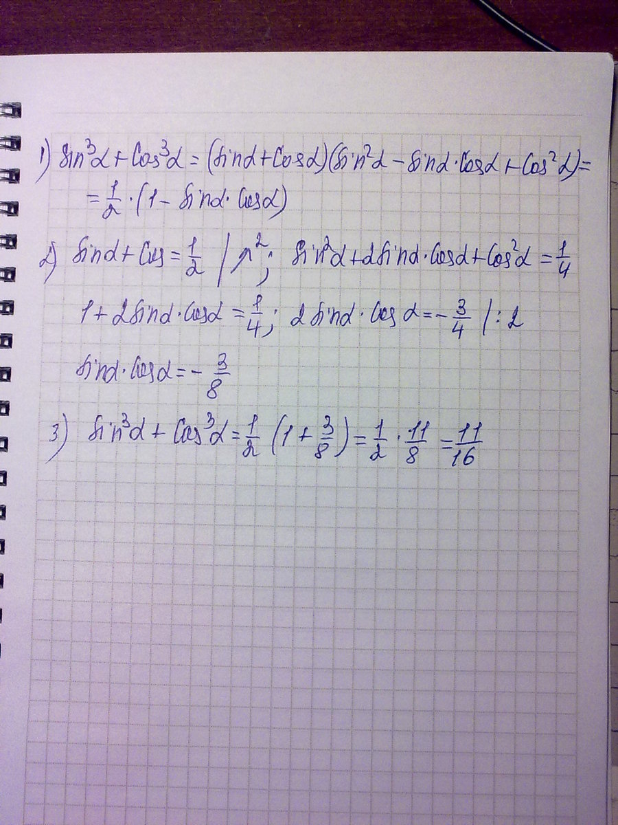 использована формула суммы кубов, основное тригонометрическое тождество, формула квадрата суммы двух чисел