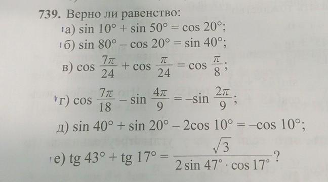 Равенство неверно . Использовали формулы разности косинусов и переход от функции sin к функции cos для углов 1 четверти и нечётность функции синус .